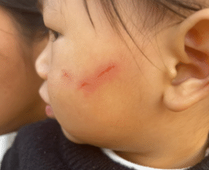 感染徵兆: 受傷 2-3 天後,傷口反而變得更紅、更腫、更熱、更痛,甚至流出黃綠色膿液或孩子發燒,這是蜂窩性組織炎的前兆,請立刻掛急診或整形外科/小兒外科。